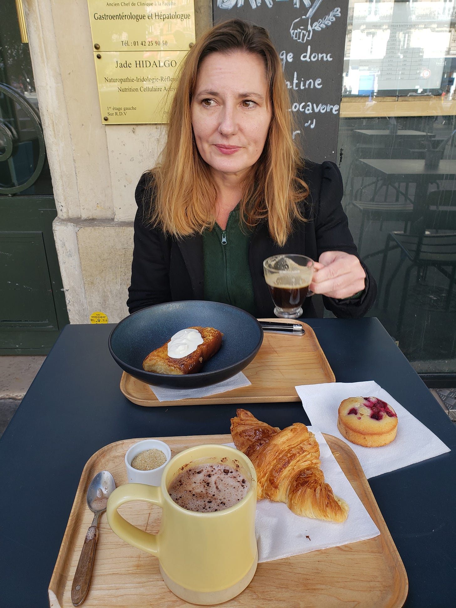First off, as I’ve probably mentioned before, I drink too much coffee. See how stressed I am in the above photo? It’s because I was an expat in Paris during month six of the pandemic, sure, but it’s also because French coffee is way too small. In other news, 2025 in America is even more stressful than 2020 in France. Who knew? I’m not sharing a recent coffee photo because the stress in my face would break your phone. I don’t want to break your phone; that would make me a bad literary citizen.